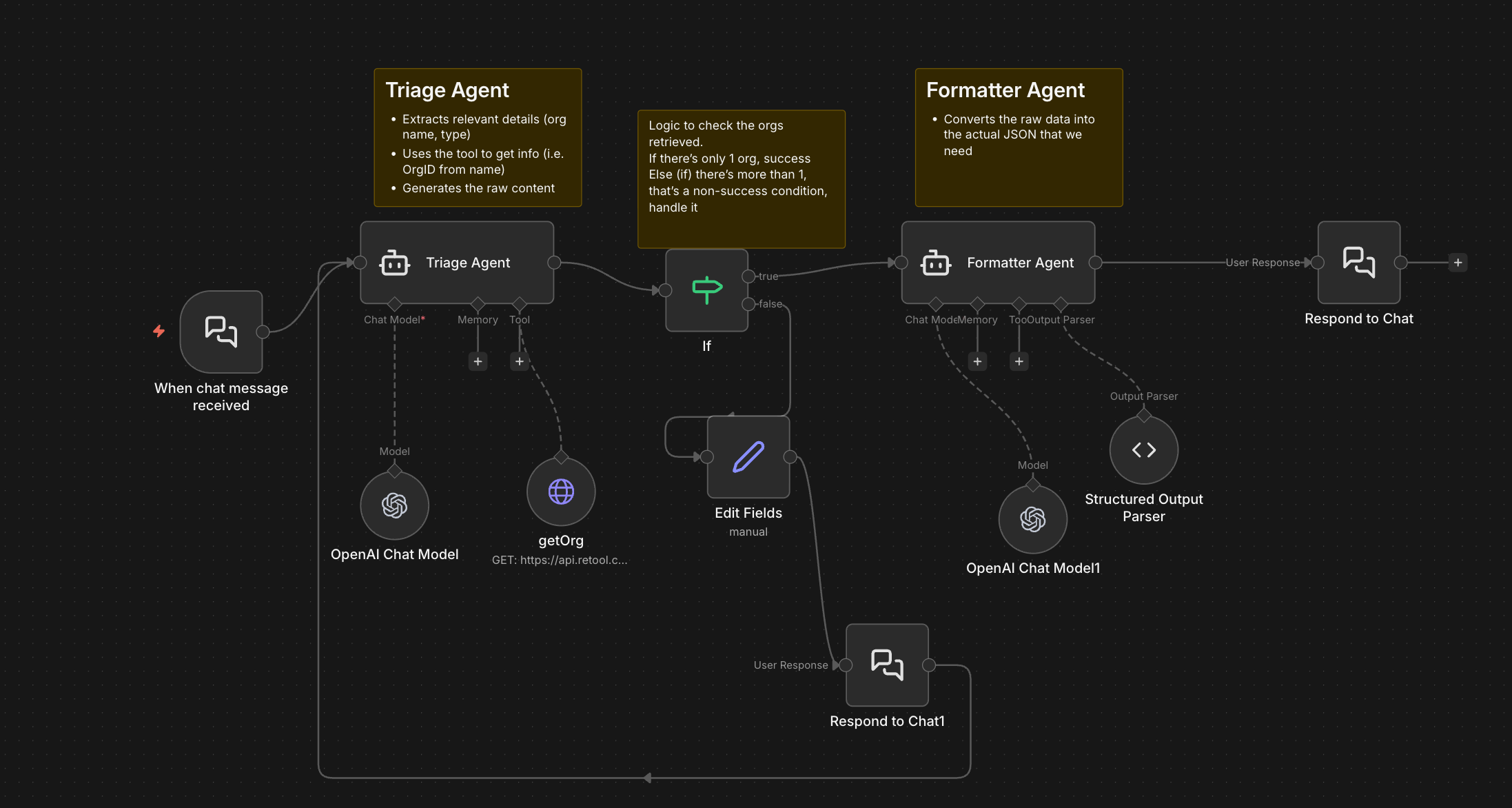For my prototype, I used N8n.io (a workflow automation platform with built-in AI agent capabilities) because it let me iterate quickly without heavy infrastructure.