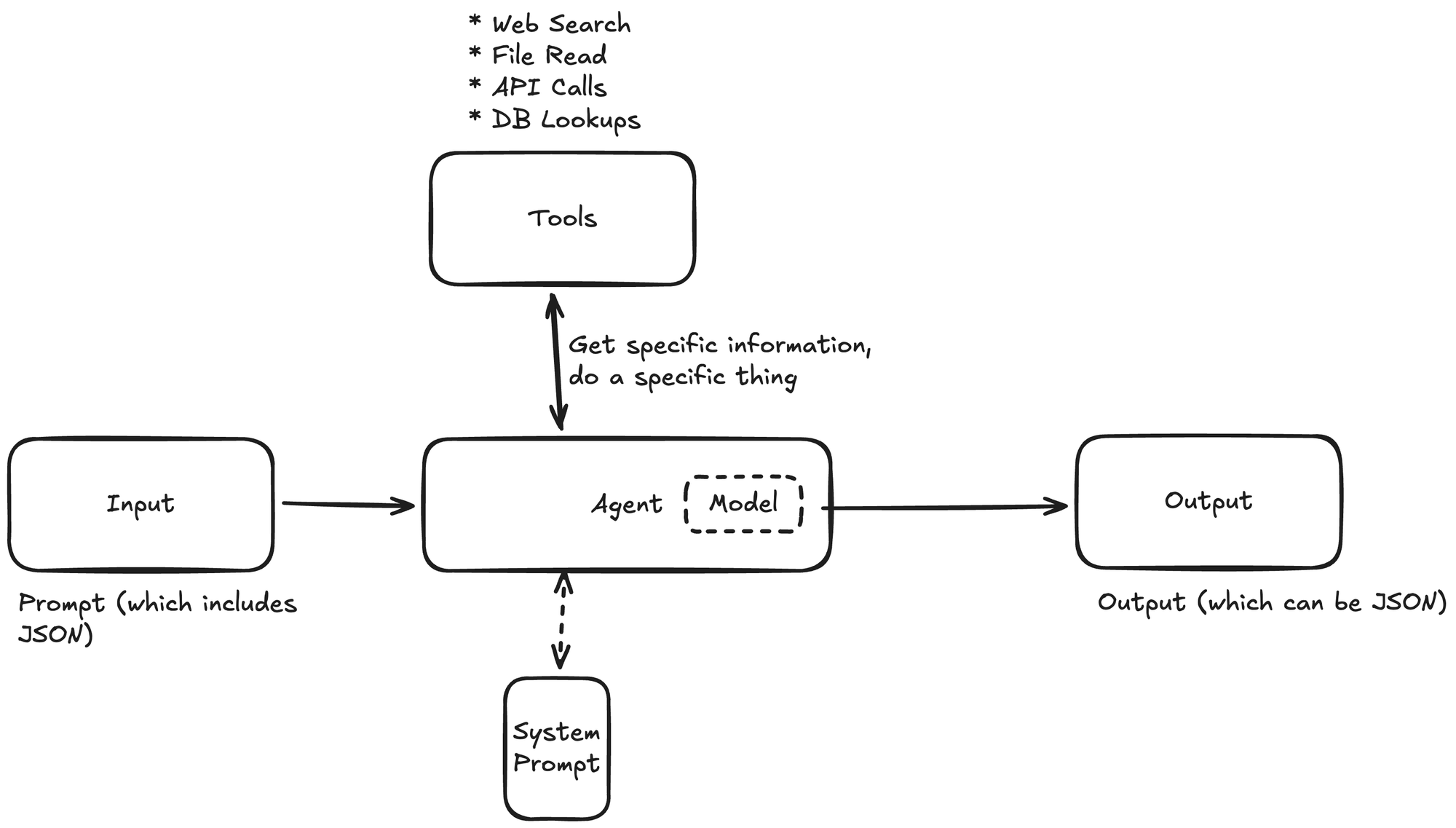 - Tools = Actions — Mechanisms for the agent to do things (query databases, call APIs, format data)