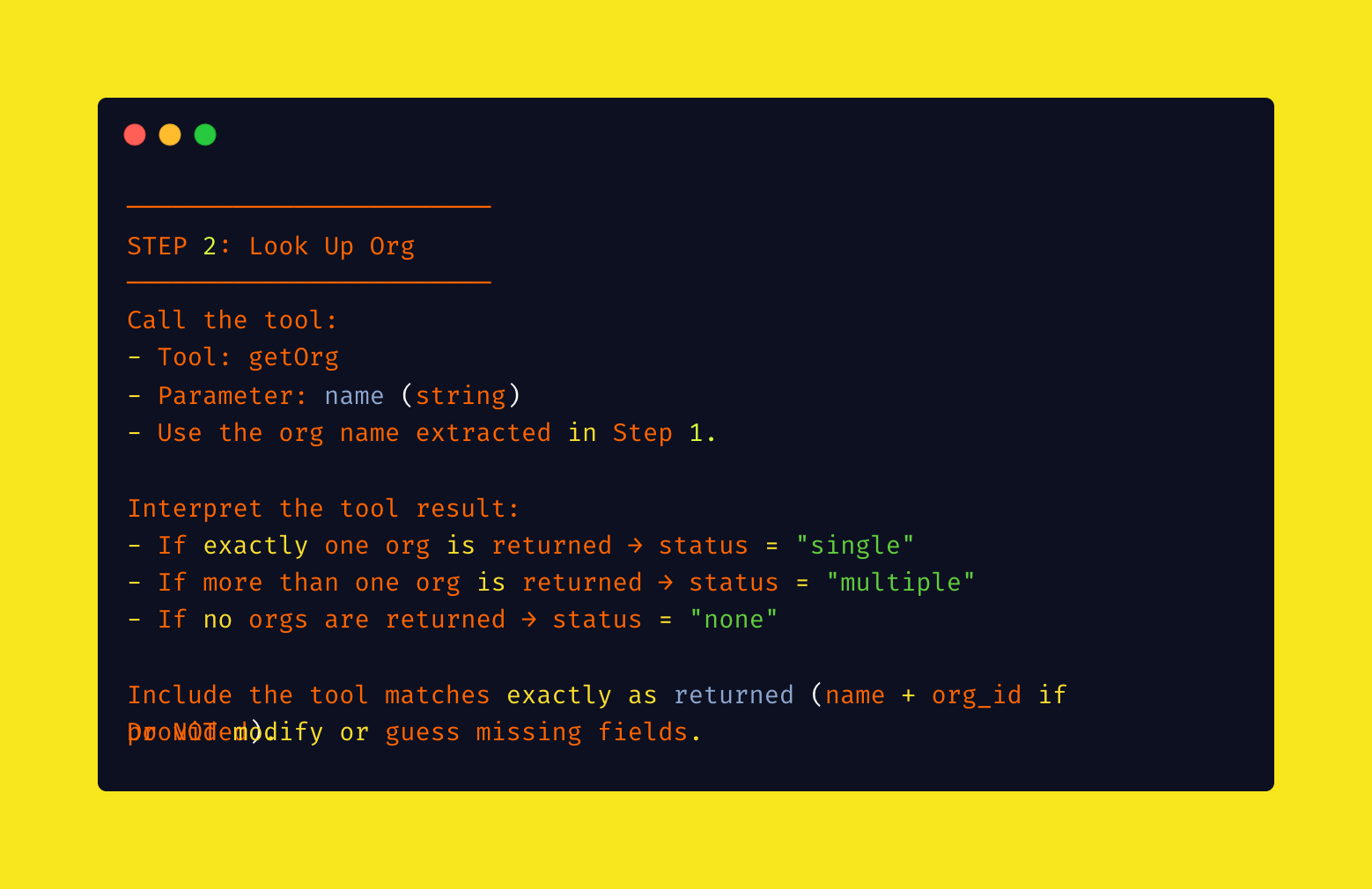 Instead, I created a sharp, specific tool: getOrg